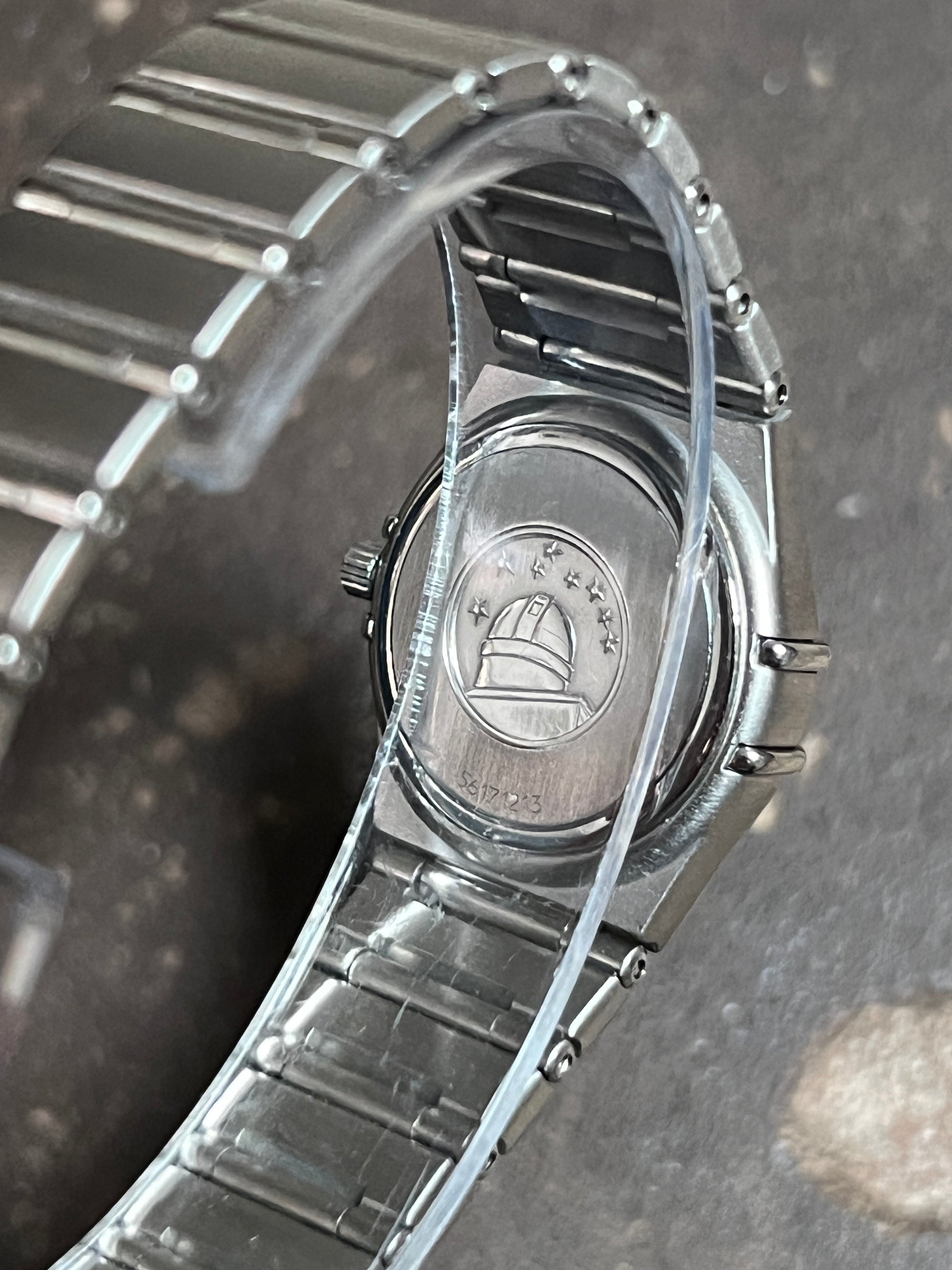 Calibre OMEGA 1456 Quartz precision movement with rhodium‑plated finish.